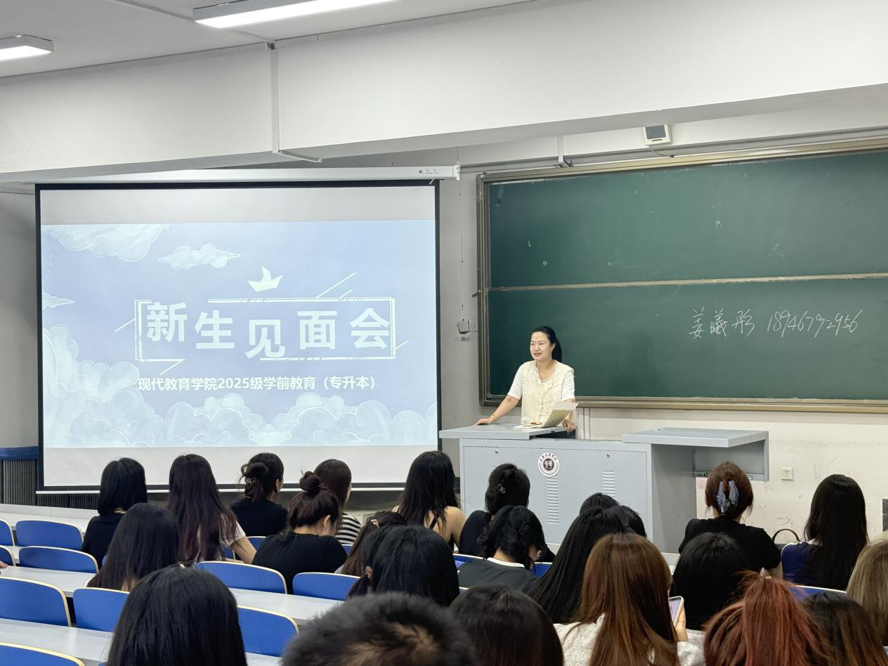 为了让2025级专升本新生深入了解校园文化、快速适应大学生活、明确未来学业与发展方向,以饱满昂扬的精神状态迎接新学期,2025年8月31日,我院于第一教学楼分别召开2025级学前教育专升本专业和小学教育专升本专业新生见面会。此次会议由学前教育专升本专业辅导员姜曦彤、小学教育专升本专业辅导员金智强主持,全体2025级专升本新生参加。