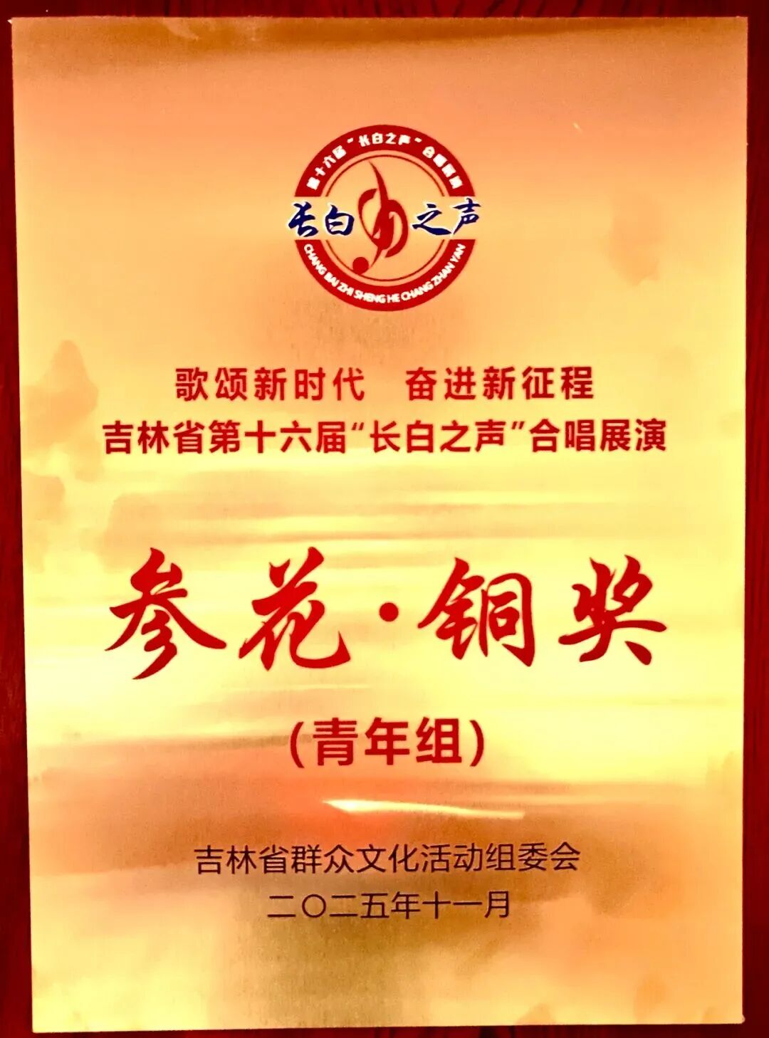 11月16日,吉林省第十六届“长白之声”合唱展演活动在长春市长影音乐厅举行。本次展演共有35支优秀团队入围,我校合唱团带来了两首原创作品——《绿叶的表述》与《生在中国》,其中《绿叶的表述》由现代教育学院王云亮老师作曲,《生在中国》由现代教育学院夏郡薇老师作曲。最终,合唱团荣获青年组“参花·铜奖”。