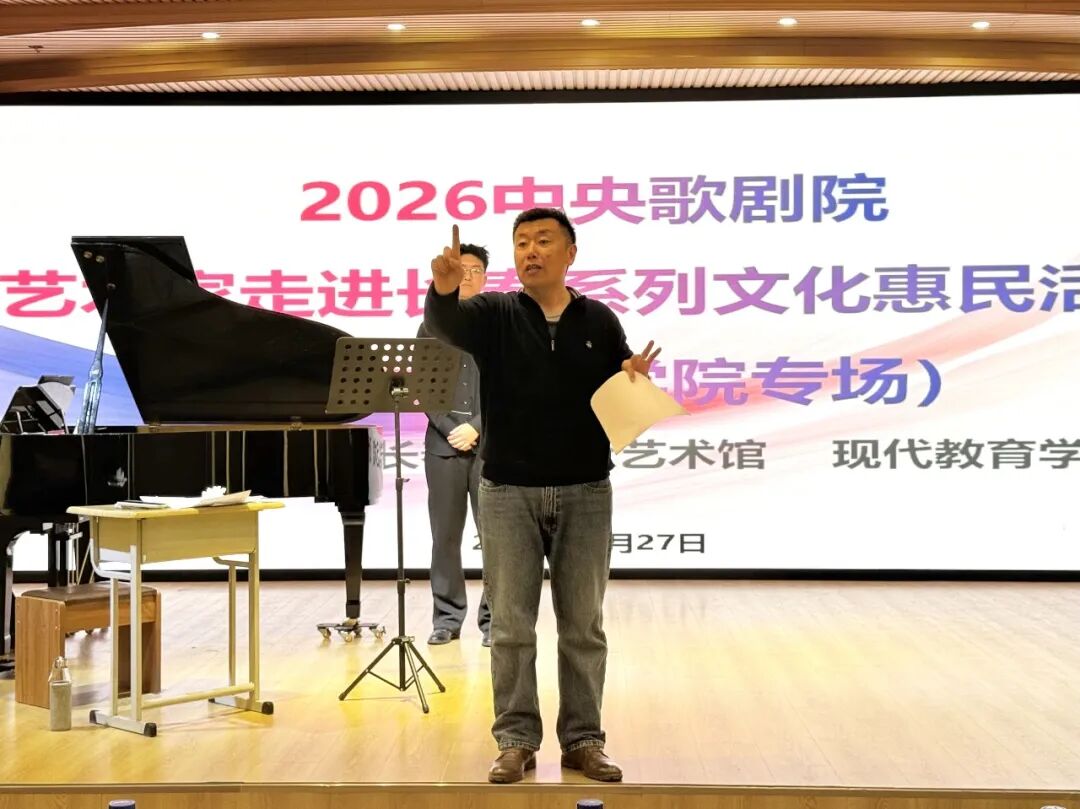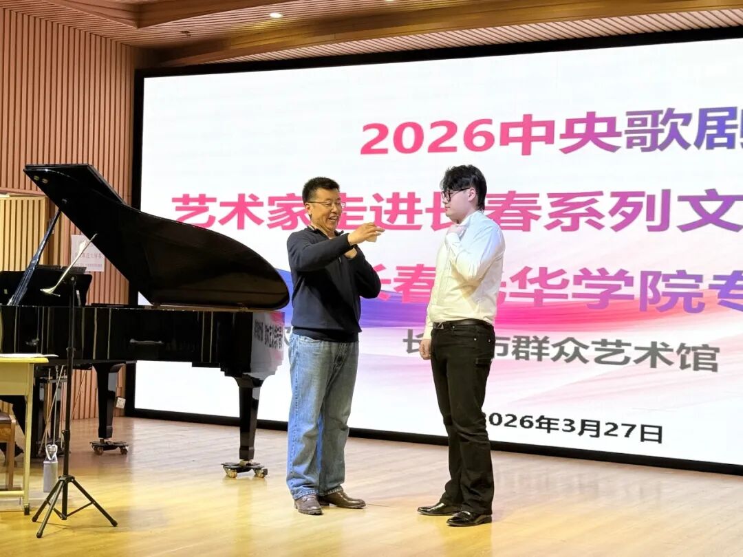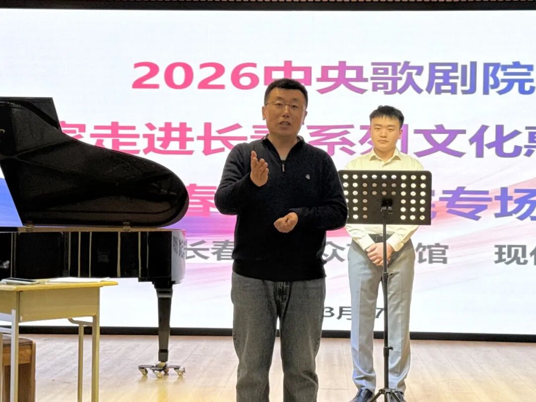 为推动高雅艺术进校园,提升艺术专业人才培养质量,近日,2026中央歌剧院艺术家走进长春系列文化惠民活动(长春光华学院专场)在长春光华学院现代教育学院举行。中央歌剧院著名男低音歌唱家、国家一级演员王旭鹏,中央歌剧院男中音歌唱家、合唱指挥、国家一级演员张晓元,长春市群众艺术馆讲师于丁,艺术教育创研中心主任夏郡薇,现代教育学院院长刘国权,党总支副书记韩刚,教学副院长尹航,科研副院长陈遥,音乐学系主任王云亮及师生代表参加活动,活动由现代教育学院汪家旭老师主持。