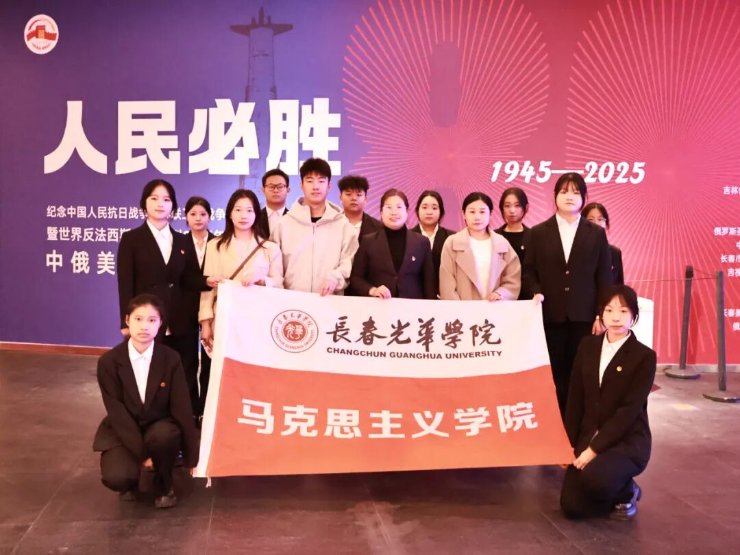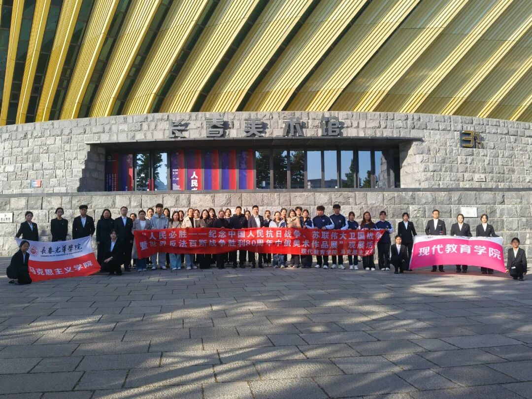 为纪念中国人民抗日战争、苏联卫国战争暨世界反法西斯战争胜利80周年,铭记历史,缅怀先烈,10月16日,长春光华学院现代教育学院联合马克思主义学院共同走进长春美术馆,观看“人民必胜——纪念中国人民抗日战争、苏联伟大卫国战争暨世界反法西斯战争胜利80周年中俄美术作品展”,马克思主义学院院长薛丽、现代教育学院院长刘国权、现代教育学院党总支副书记韩刚、师生党员、学生骨干、2025级学生代表参加观展活动